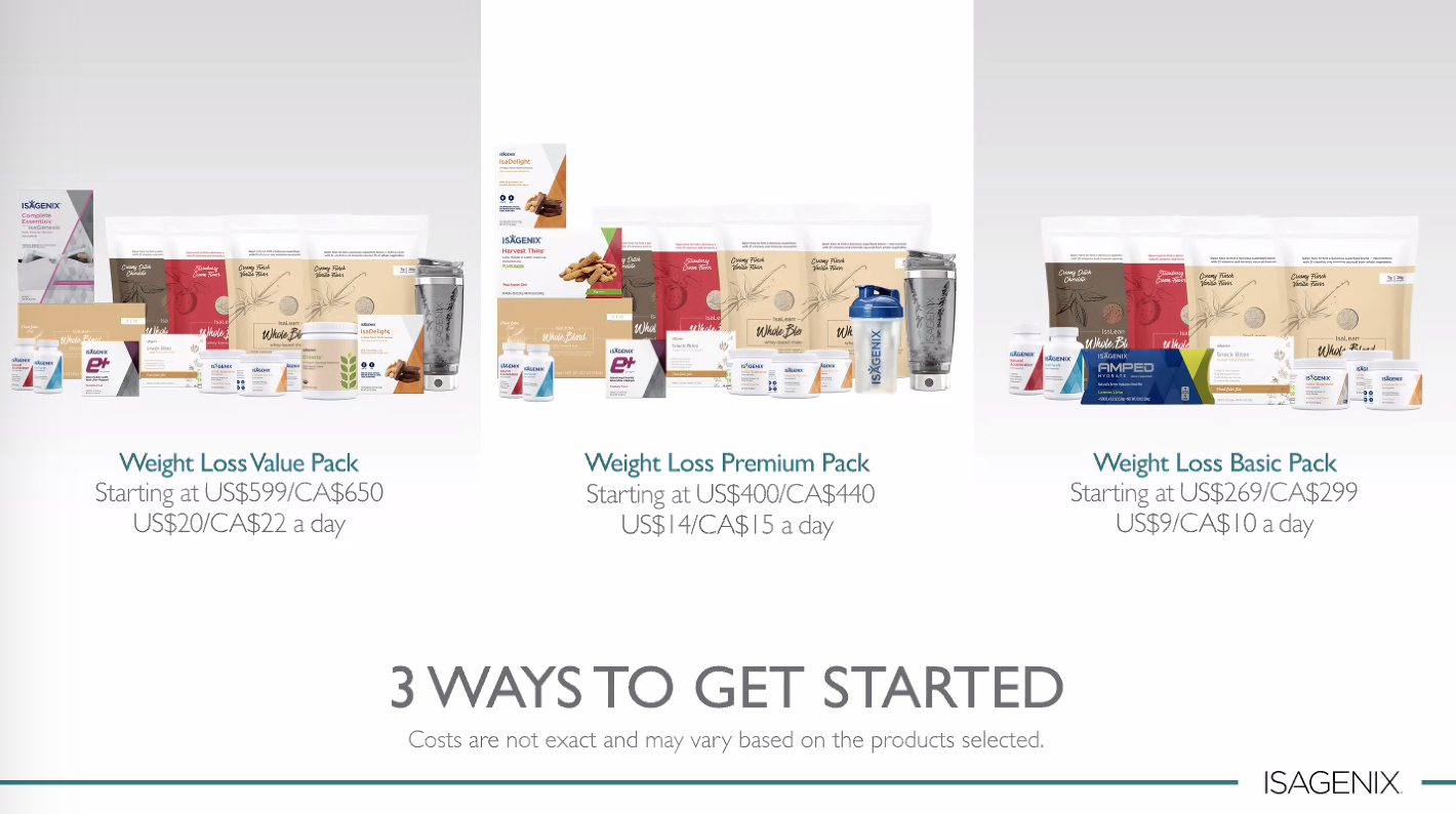 It’s called the Value Pak and it breaks down to $20/day. It includes the complete 30 day system which provides you two meals a day but with this pack you’re also getting a bunch of snacks including healthy chocolates which are amazing, a box of meal replacement bars, whey/harvest thins which are a high protein savory chip so you can snack without the guilt, a canister of greens which has over 30 different kinds of vegetables, womens/mens vitamins which are like nutritional insurance in convenient tear packs, e shots which are healthy energy drinks that give you a focused sustained boost without the crash, a beautiful stainless steel travel blender, a $75 Event Coupon, $25 off your next order, and when you convert to Associate to take full advantage of the compensation plan, your first year's membership will be free ($19 annually thereafter).